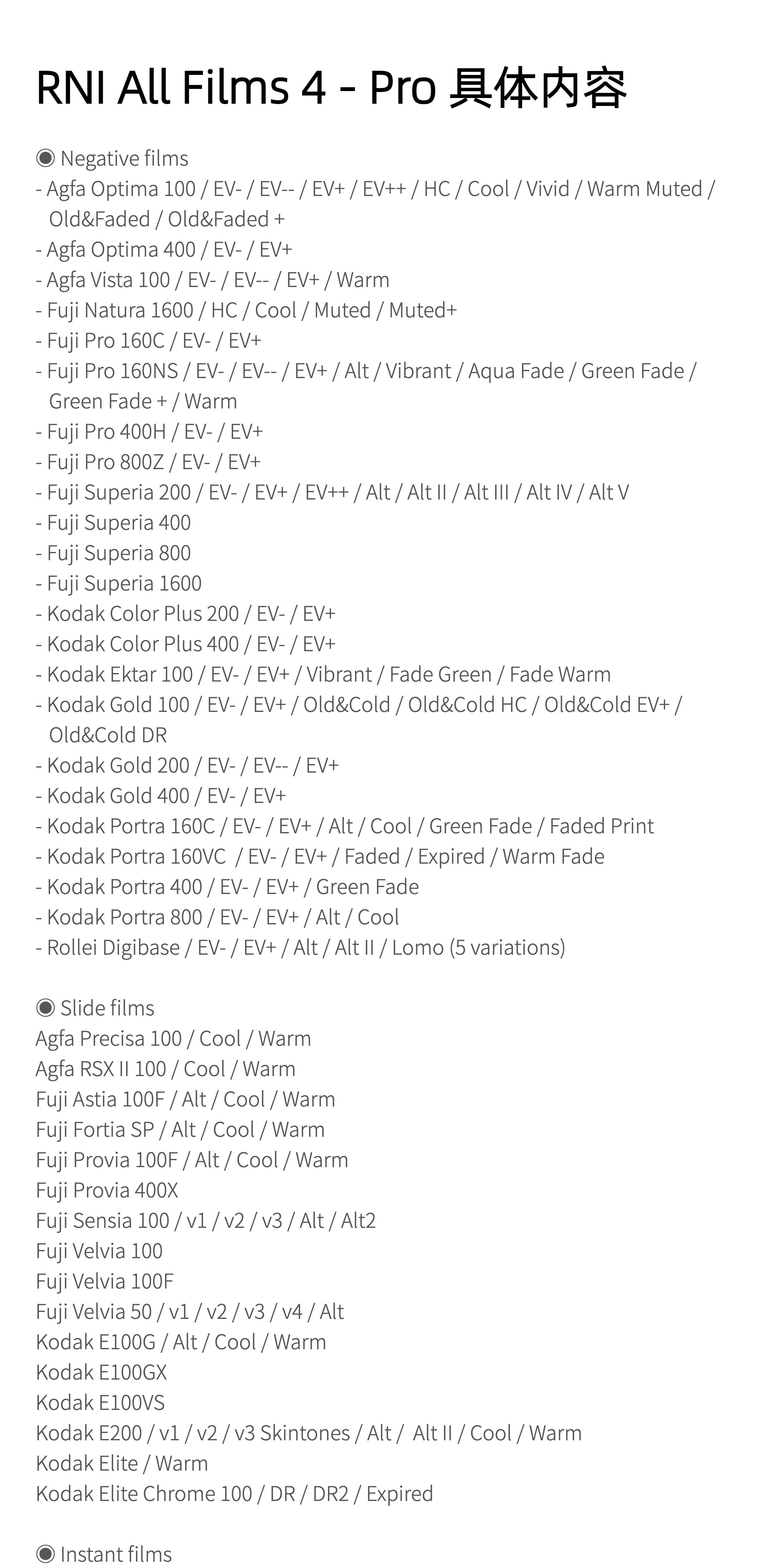 我们运用最先进的色彩科学与顶尖设备,对真实胶片进行精心数字化处理。RNI All Films 5 将模拟胶片的独特魔力融入您的数字工作流程,只需一键,即可让您的照片焕发惊艳光彩。