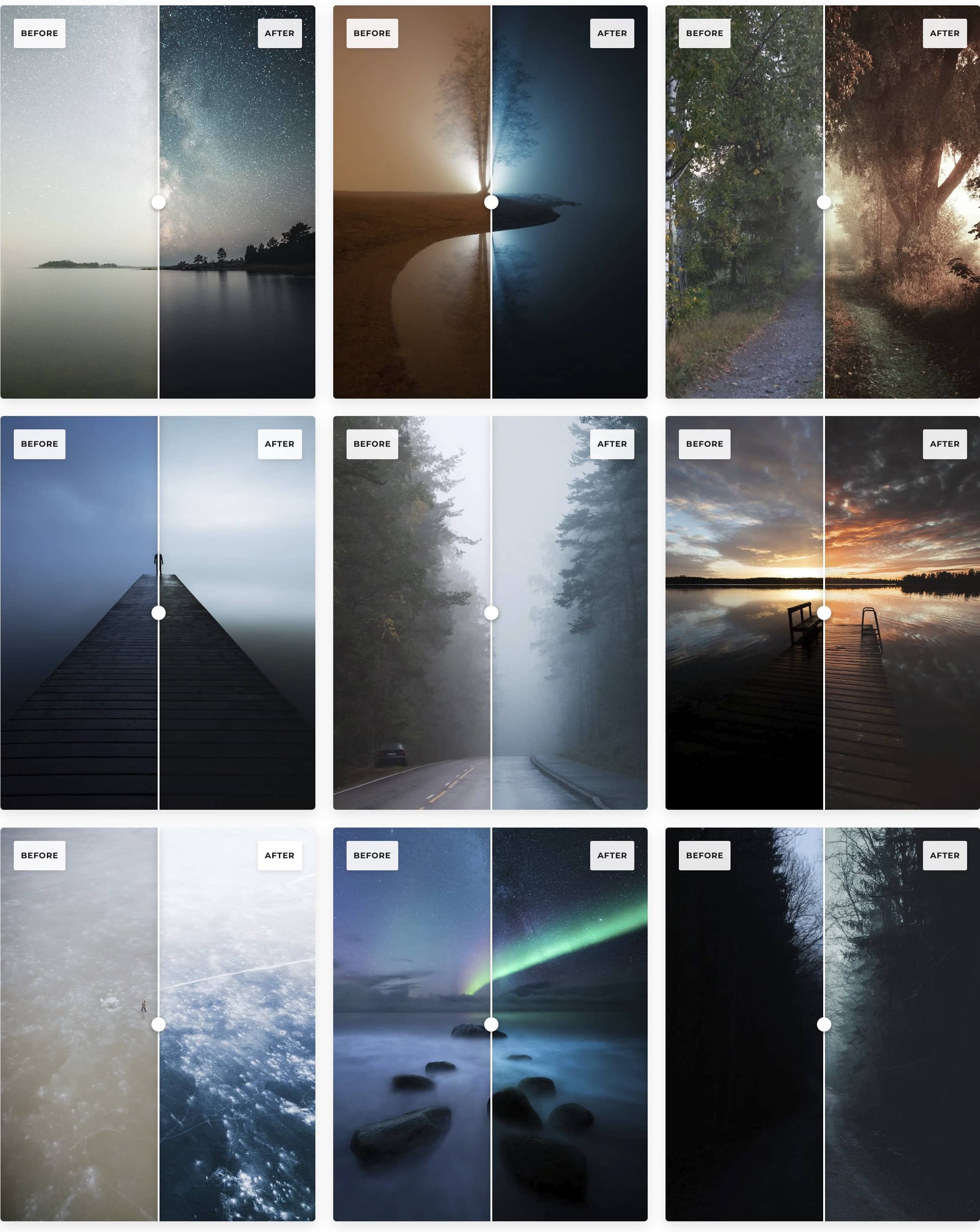 这是一个庞大的目录,分为8个不同类别,如蓝色时刻、雾、森林和电影。瞬间找到任何照片的完美氛围。